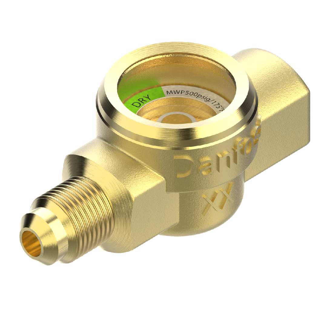 อุปกรณ์ป้องกันระบบทำความเย็น Sight glass ยี่ห้อ Danfoss ชนิด SG/SGP ติดตั้งอยู่หลังดรายเออร์กรองในท่อของเหลวของระบบทำความเย็น และในคอมเพรสเซอร์โดยใช้แบบเชื่อมต่อซ็อกเก็ต เพื่อสังเกตการเปลี่ยนแปลงสถานะของสารทำความเย็น (ของเหลว/ไอ) และเพื่อแสดงระดับความชื้นด้วยสี