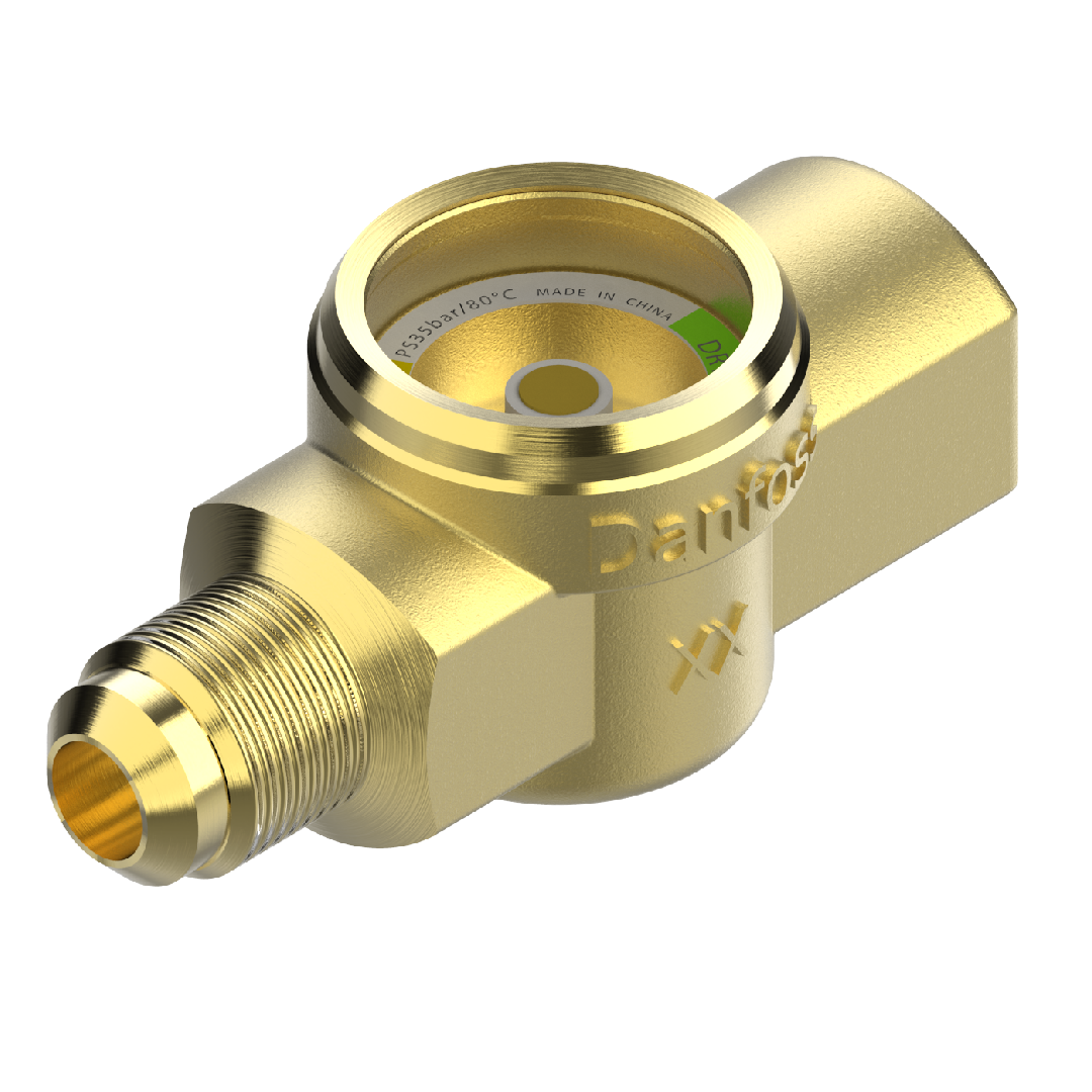 อุปกรณ์ป้องกันระบบทำความเย็น Sight glass ยี่ห้อ Danfoss ชนิด SG/SGP ติดตั้งอยู่หลังดรายเออร์กรองในท่อของเหลวของระบบทำความเย็น และในคอมเพรสเซอร์โดยใช้แบบเชื่อมต่อซ็อกเก็ต เพื่อสังเกตการเปลี่ยนแปลงสถานะของสารทำความเย็น (ของเหลว/ไอ) และเพื่อแสดงระดับความชื้นด้วยสี